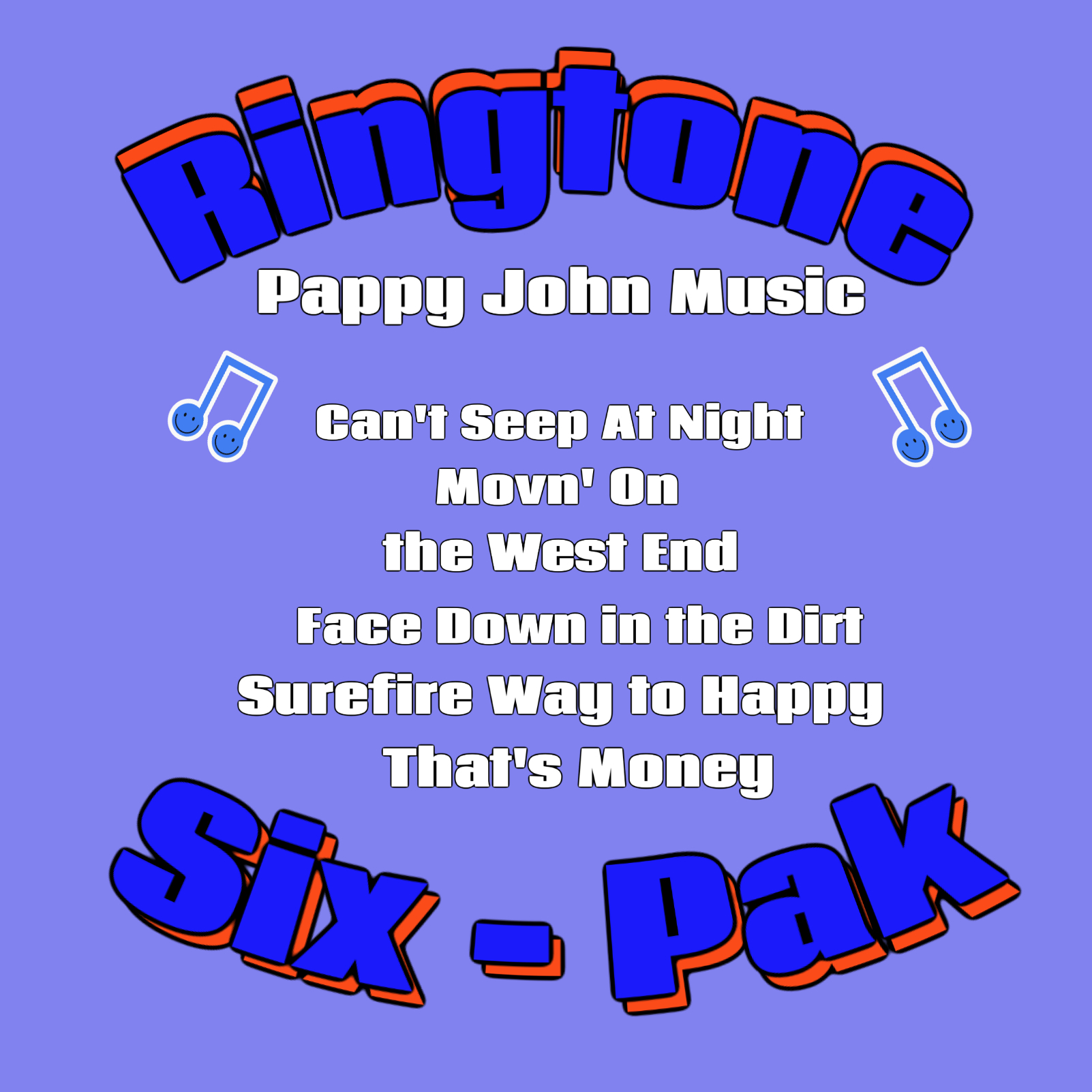Download six new ringtones to your phone to start using right away. “Can’t Sleep at Night,” “Movin’ On,” “the West End,” “Face Down in the Dirt,” “Surefire Way to Happy,” and “That’s Money”. Enjoy them now. Add to cart to purchase. Once purchased you will receive the downloadable ringtone within 24 hours, (usually right away,).